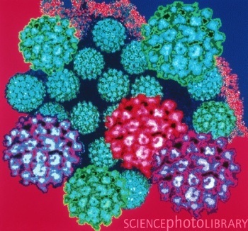 I Picornavirus sono i più piccoli tra i ribovirus (virus a RNA) e contengono i rinovirus, polikovirus e virus echo capaci di indurre meningiti asettiche e gli enterovirus con la coxackie e il polio virus che causa la poliomielite.