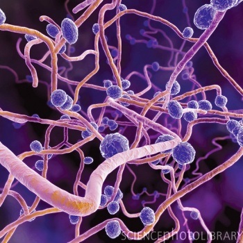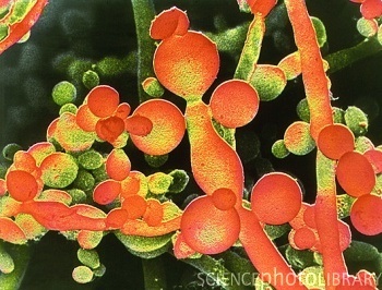Gli aspergilli sono saprofiti molto diffusi nell'ambiente e solitamente non sono patogeni. I ceppi riconosciuti appartengono al 90% al genere Aspergillus fumigatus. Infezioni opportunistiche sono frequenti nei leucemici, nei trapianti d' organo, nei soggetti immunocompromessi dove può raggiungere il polmone e proliferare rapidamente (fig. 8.15). Caratteristica importante di questo fungo, è la sua capacità di penetrare attraverso