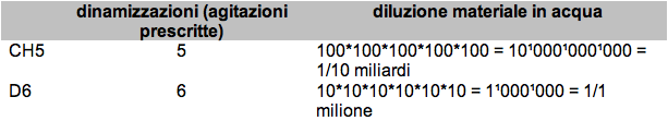 Le sigle, come D (dieci) e CH (cento) con susseguente cifra, indicano diluzione e dinamimizzazione, p.es.: