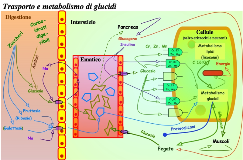Di una nutrizione molto scarsa di glucidi si conosce la "gran voglia di dolci" dai racconti di popoli quasi carnivori come eschimesi, masai, ..., ma senza notevoli effetti patogeni. Da nutrizioni molto ricche di glucidi invece si sospetta che promuovino la formazione di diabete II senescente.
