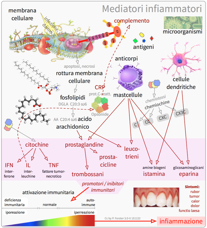 Una grande parte di mediatori immunitari sono anche mediatori infiammatori e inducono i relativi sintomi: