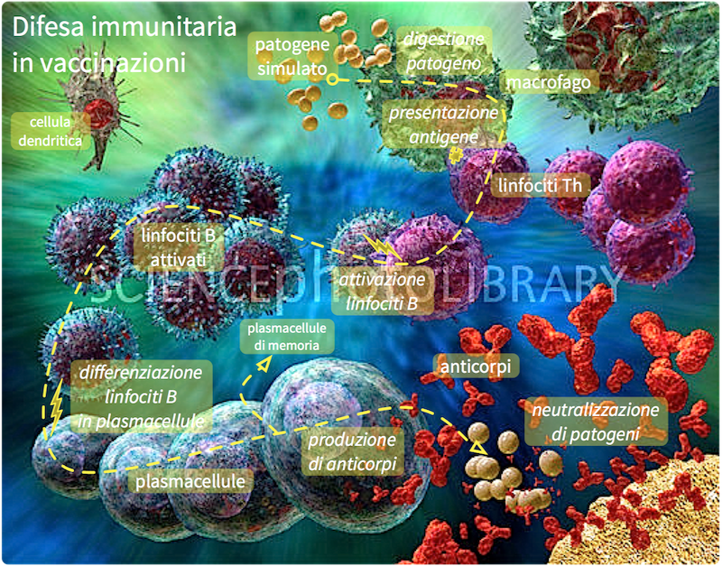 5. VaccinazioniVaccinazione it.Wikipedia ◊ Vaccinazioni per bambini MedPop Una vaccinazione è un metodo immunostimolante specifico. Nella forma attiva (preventiva) si simula un'infezione con dei specifici germi inattivati (o di loro frammenti), cioè non capaci di proliferazione. Il sistema immunitario mette di conseguenza in moto la normale reazione immunitaria contro questo presunto germe, la quale conclude con la produzione di specifici anticorpi e delle cellule "di memoria" contro questo germe. L'immunizzazione ci mette al solito tra 2 ... 3 settimane finché sono formati anche le specifiche plasmacellule di memoria.