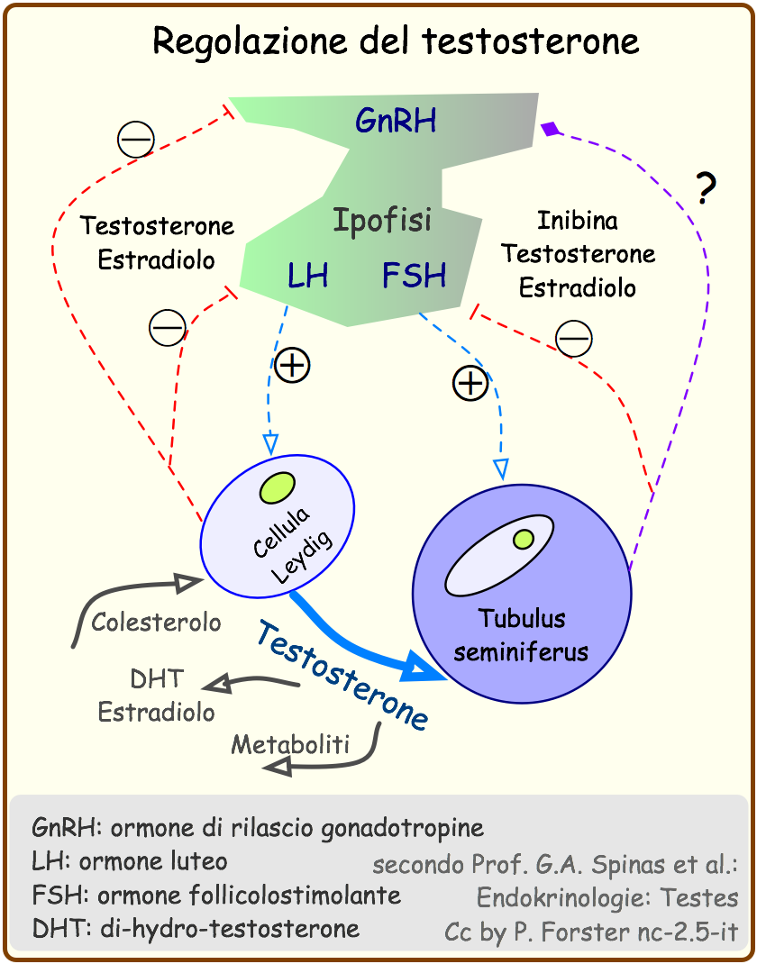 Il testosterone e l'estradiolo in circolazione "frenano" a monte la produzione di ormone luteo LH, ormone follicolostimolante FSH e l'ormone di rilascio di gonadotropine.