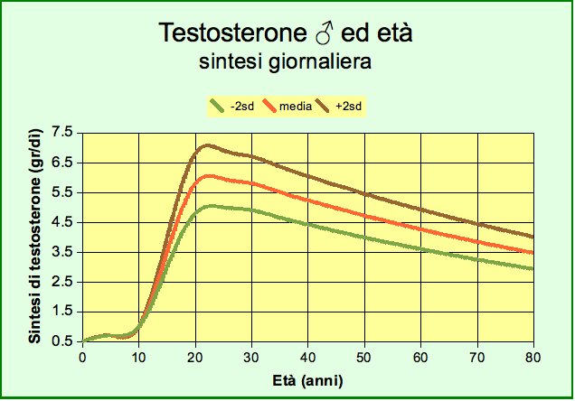 La sintesi testosteronica è notevolmente variabile con l'età: