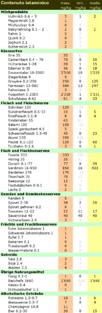 Contenuto istaminico in alimenti