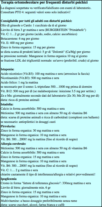 Ricettario approssimativo per Terapie Psico - Ortomolecolari