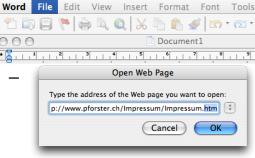 3) Entrare in Word e cercare File:Open Web Page. Appare una