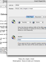 Appare una finestra nella quale si sceglie <Web Page> e si infila il nome di un Bookmark di destinazione sotto <Anchor> (àncora). Personalmente scelgo al solito le prime quattro lettere di una frase (in maiuscolo). Poi si clikka <OK>. |