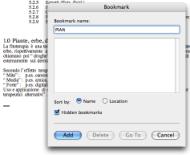 finestra <Bookmark> nella quale infilo <PIAN> e poi <Add>. Finito! |