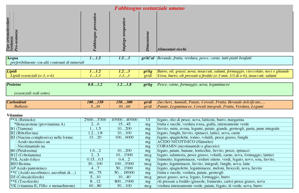 Acqua, lipidi, proteine, carboidrati, vitamine
