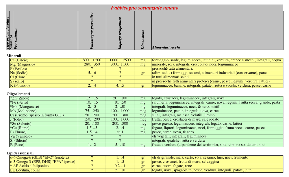 Minerali, oligoelementi, lipidi essenziali