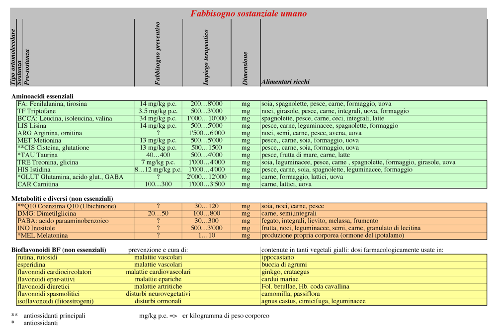 Aminoacidi essenziali, metaboliti, bioflavonoidi