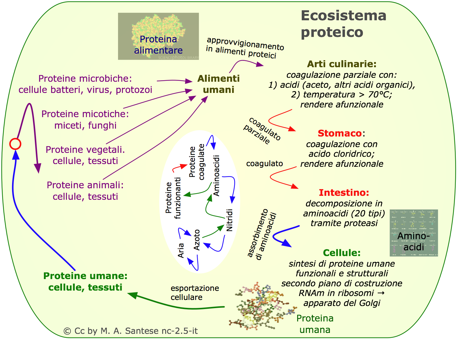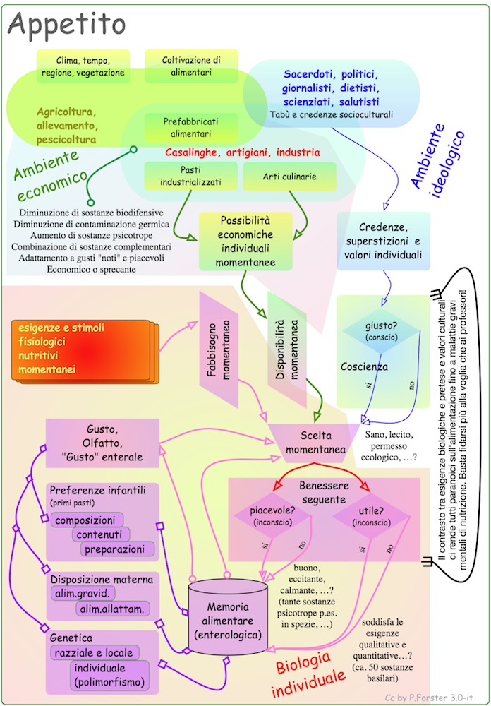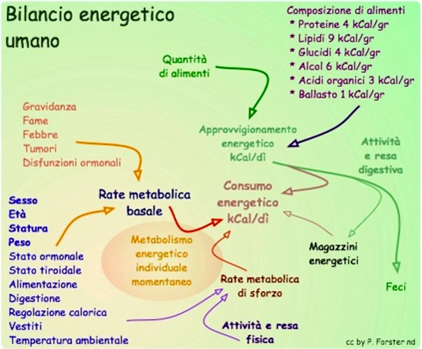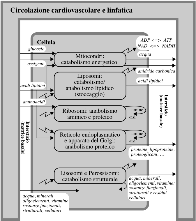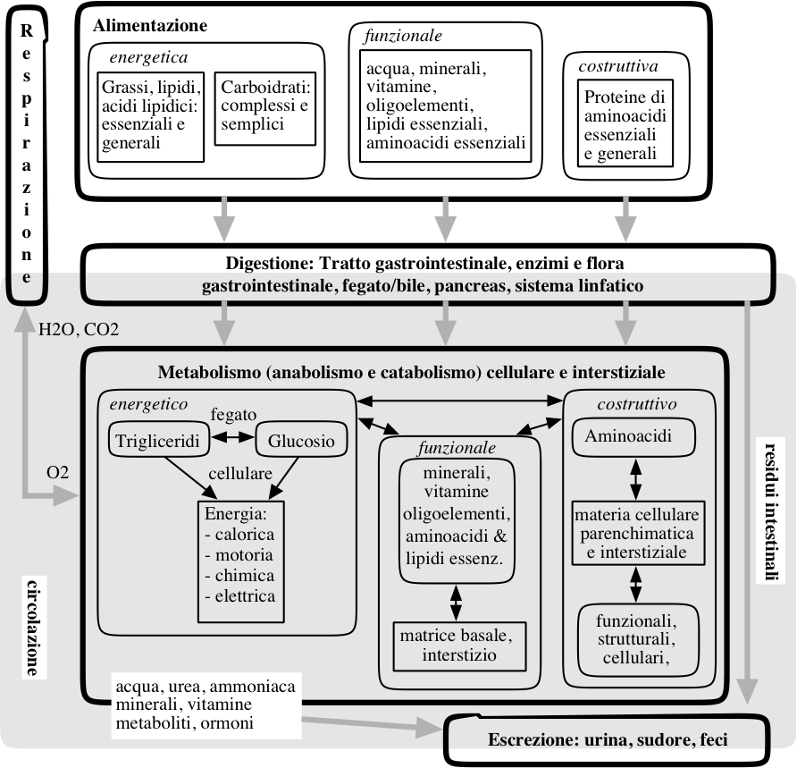 Il seguente schizzo dà un'idea della trasformazione di sostanze alimentari in energia ed elementi necessari all'organismo. In questo processo, oltre all'alimentazione, sono coinvolti: