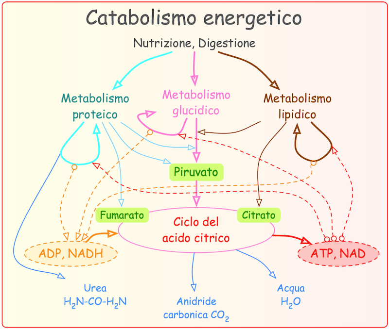 Di seguito (per semplicità) è trattato solo il catabolismo dei glucidi.
