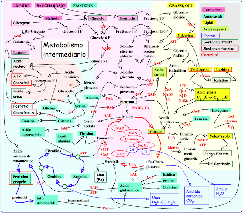 Nei seguenti cicli metabolici, come in tanti altri processi metabolici, è importante l'immagazzinamento e la liberazione di determinate porzioni energetiche tramite l'adenosinfosfato (tri- o di- cioè 3 o 2)