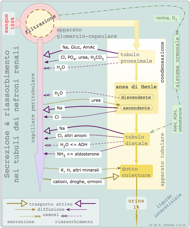 Ogni rene è formato da milioni di nefroni avvolti da glomeruli contorti. In essi si forma l'urina contenente ammoniaca, urea e acido urico, sostanze altamente tossiche per il nostro organismo.