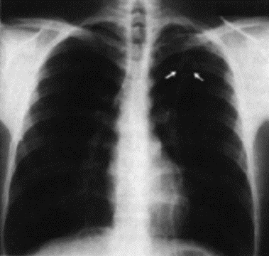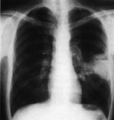Aria tra le lamine pleuriche causa il collasso polmonare: il polmone si contrae in un pezzo di tessuto grande come un pugno intorno allilo.