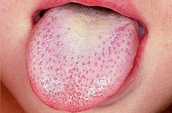 Sintomi: gonfiore doloroso della mucosa, lingua coperta, fiato puzzolente.