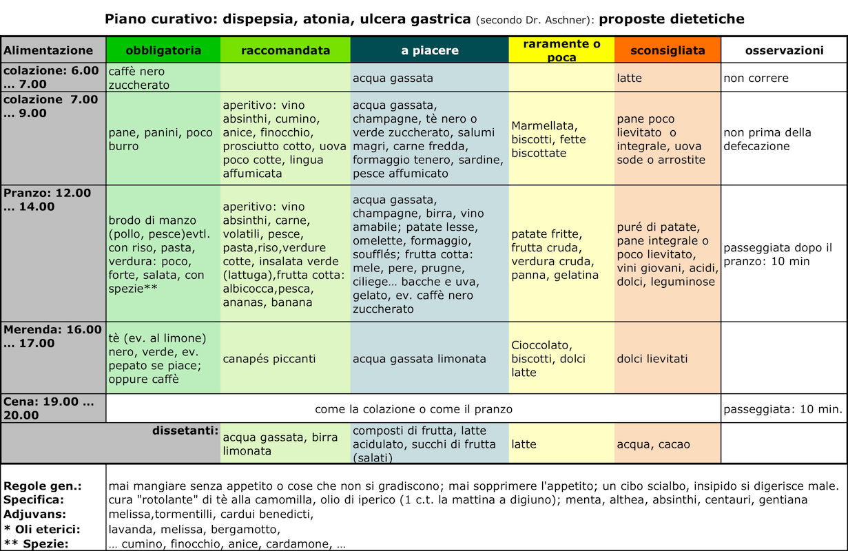 Di seguito, mi permetto di riportare la sintesi di un suo piano curativo per "pazienti distonici/dispeptici", la cui applicazione effettuata per qualche mese, ha migliorato notevolmente la situazione di diversi miei pazienti:
