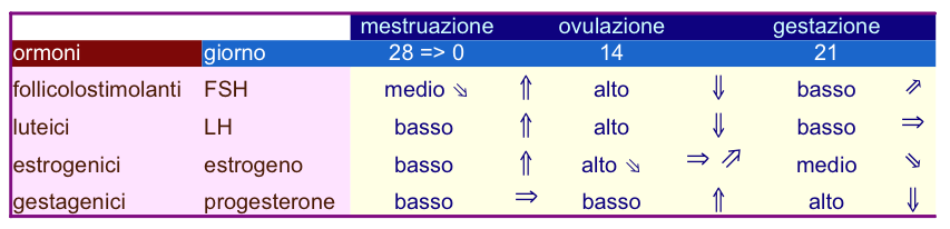Il seguente grafico riporta come ricapitolazione le variazioni ormonali femminili durante un ciclo: