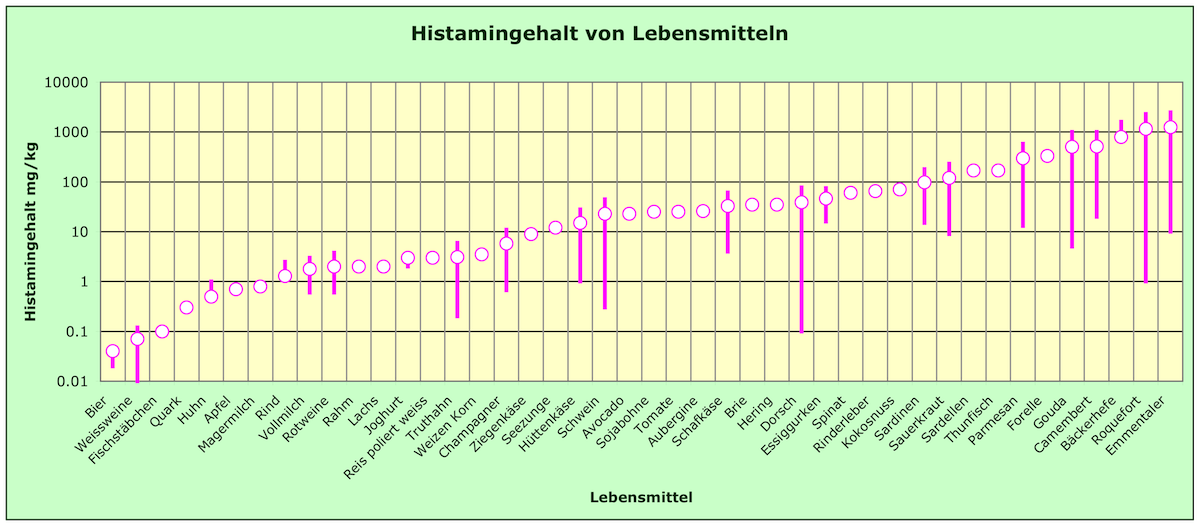 Dieta: ricca di proteine animali e in abbondanza proteine stagionate come salumeria, formaggi stagionati, pesci affumicati e conservati. → Istamina in alimenti