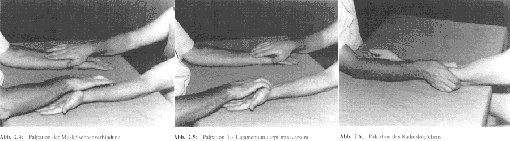 * vada con la mano verso il gomito: il medio dorsale sulla conca del gomito, il pollice opposto sulla parte ventrale